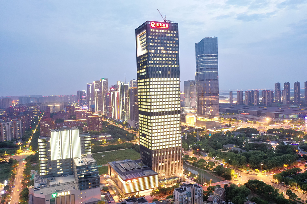 招商银行南京分行招银大厦工程,总建筑面积133566.7平方米,由一栋超高层塔楼及裙房组成,地下3层,地上45层,最大高度216.8米,地下为车库、设备用房,地上为办公楼,是一栋集办公、商业为一体的综合性写字楼,基础采用桩筏基础,塔楼为框架-核心筒结构。200米高空观景平台打造“招行之窗”,立意“财富之门”,成就城市亮点。