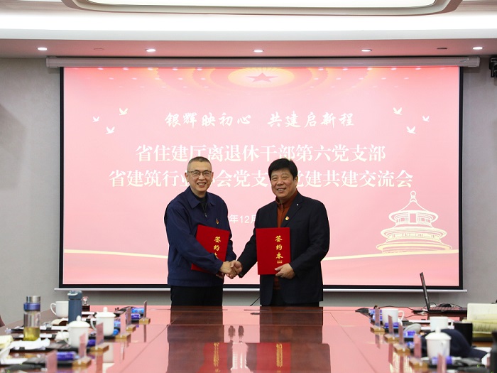 12月12日上午,江苏省住建厅离退休干部第六党支部与省建筑行业协会党支部召开了党建共建交流会,厅离退休干部处四级调研员周绍东参会。会议由厅离退休干部第六党支部书记章小刚和省建筑行业协会功能型党支部副书记孙忠建共同主持。