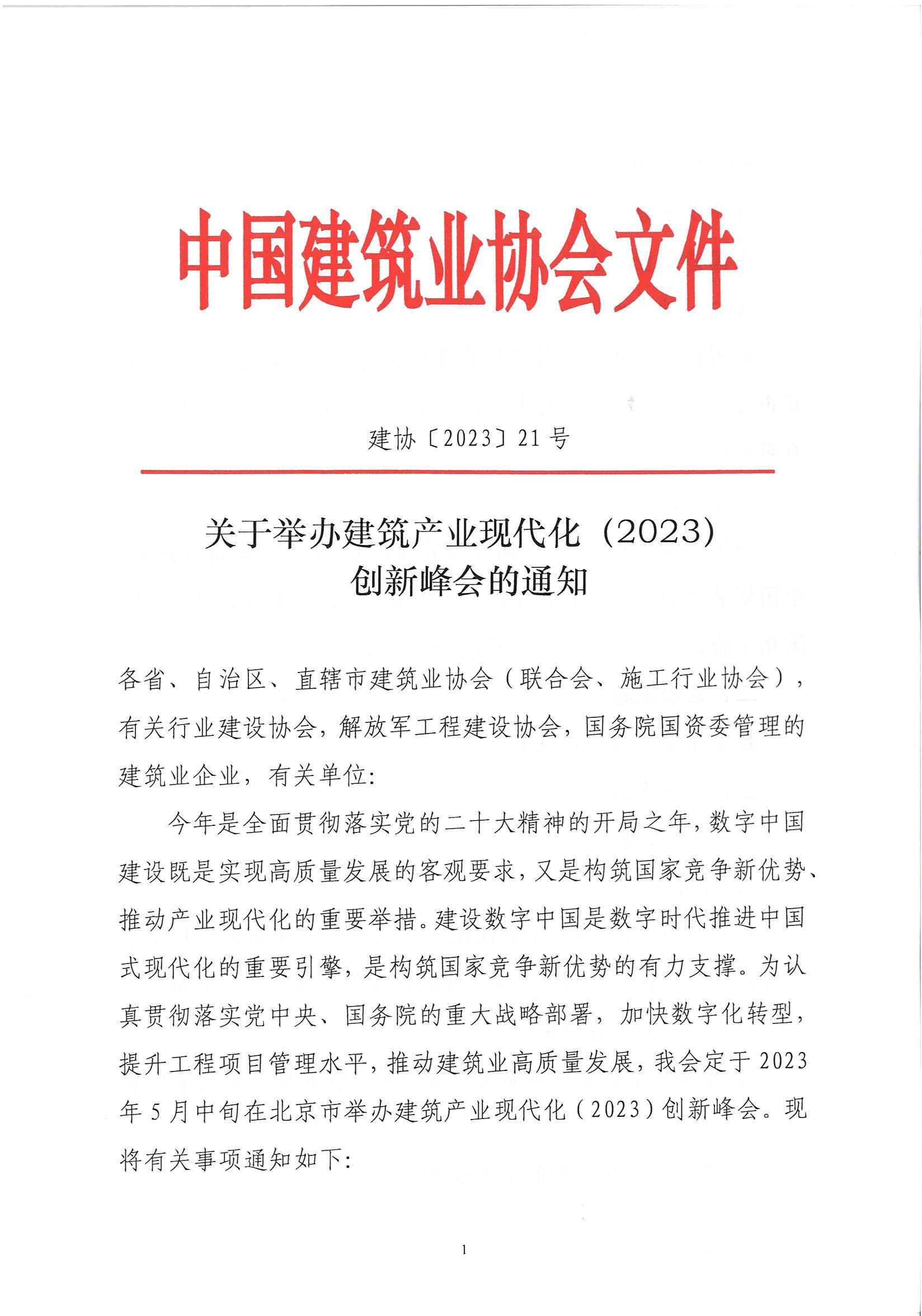 关于举办建筑产业现代化(2023)创新峰会的通知