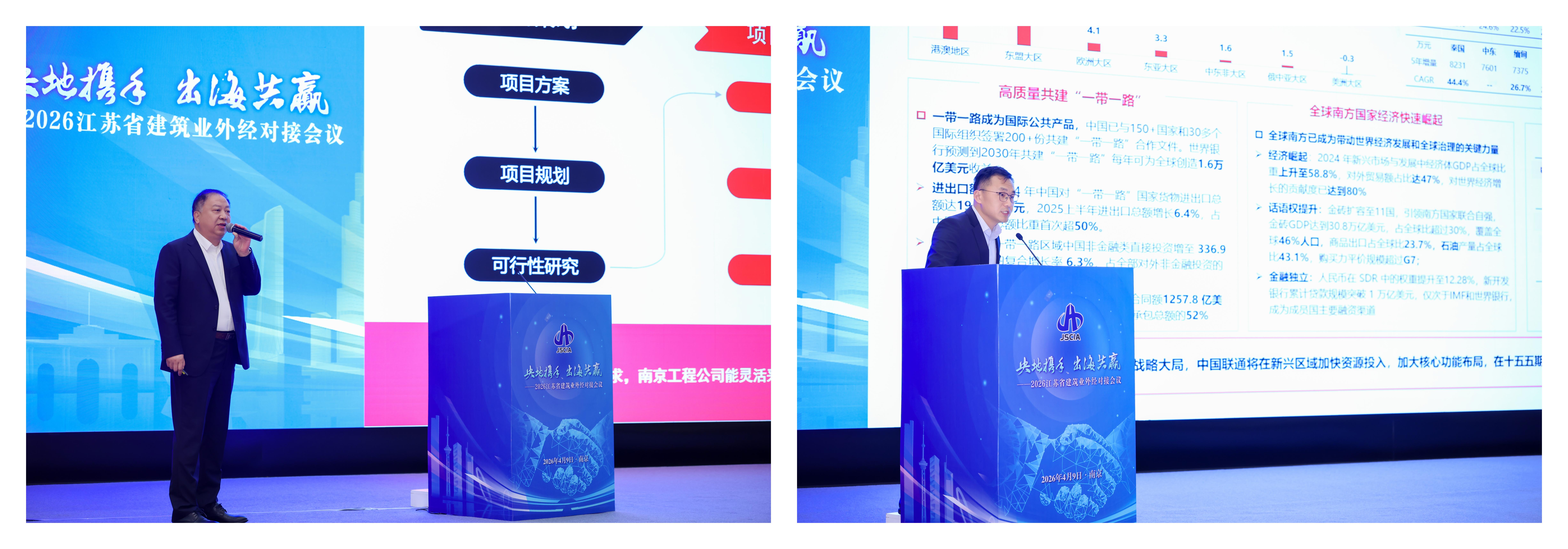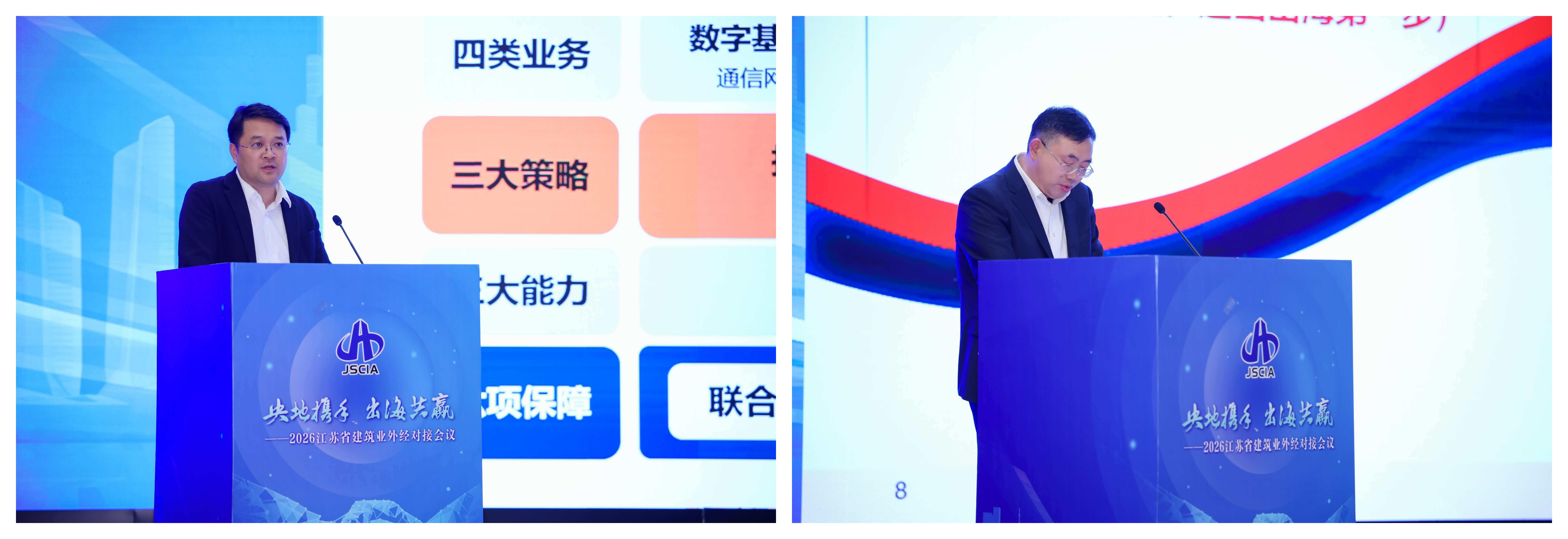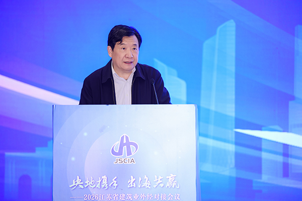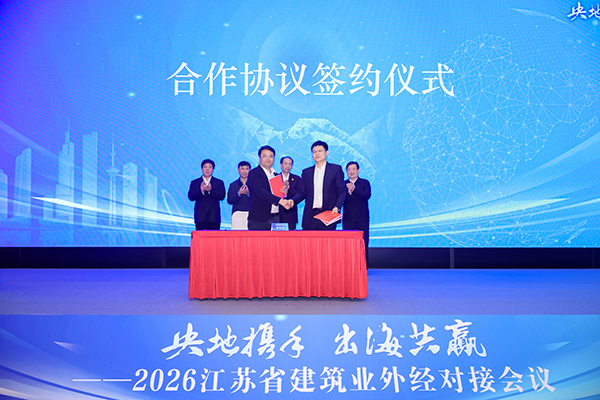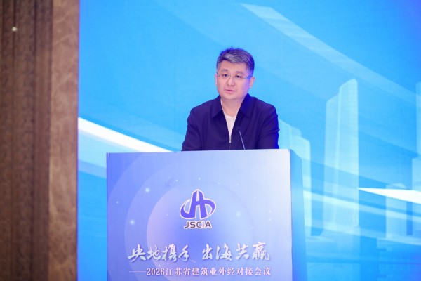 4月9日下午,由江苏省建筑行业协会主办的“央地携手 出海共赢”——2026 江苏省建筑业外经对接会议在南京国际博览中心召开。本次会议旨在汇聚各方力量,推动我省建筑业企业加快“走出去”步伐,促进央地协同、产业链融合,助力“一带一路”建设高质量发展。