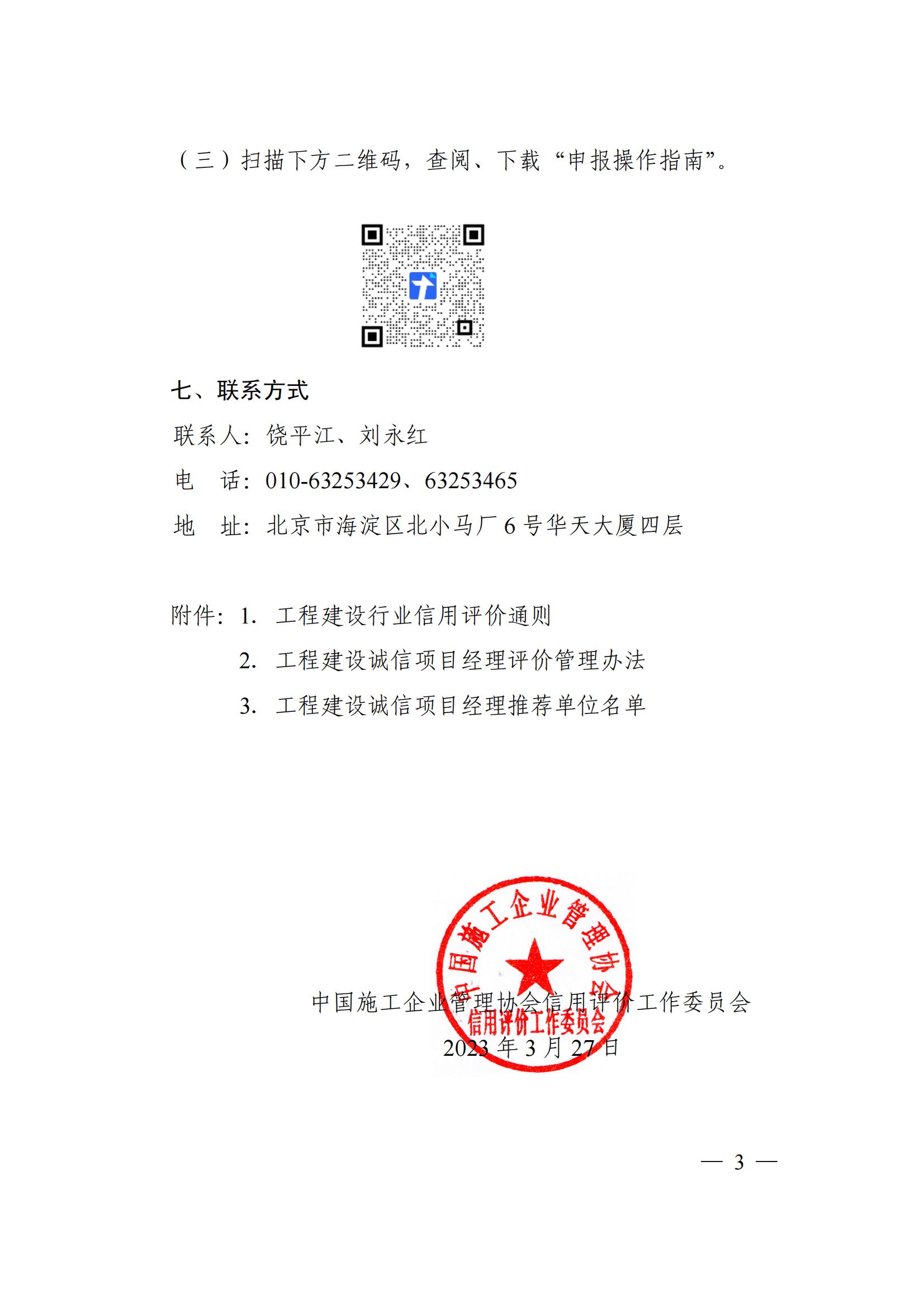 请参加中施企协诚信项目经理评价的单位按照通知要求进行申报。初评企业请于5月23日前,将装订成册的申报材料报至我会行业发展部,我会将统一推荐。联系人:胡宇、田浩,联系电话:025-83312695。