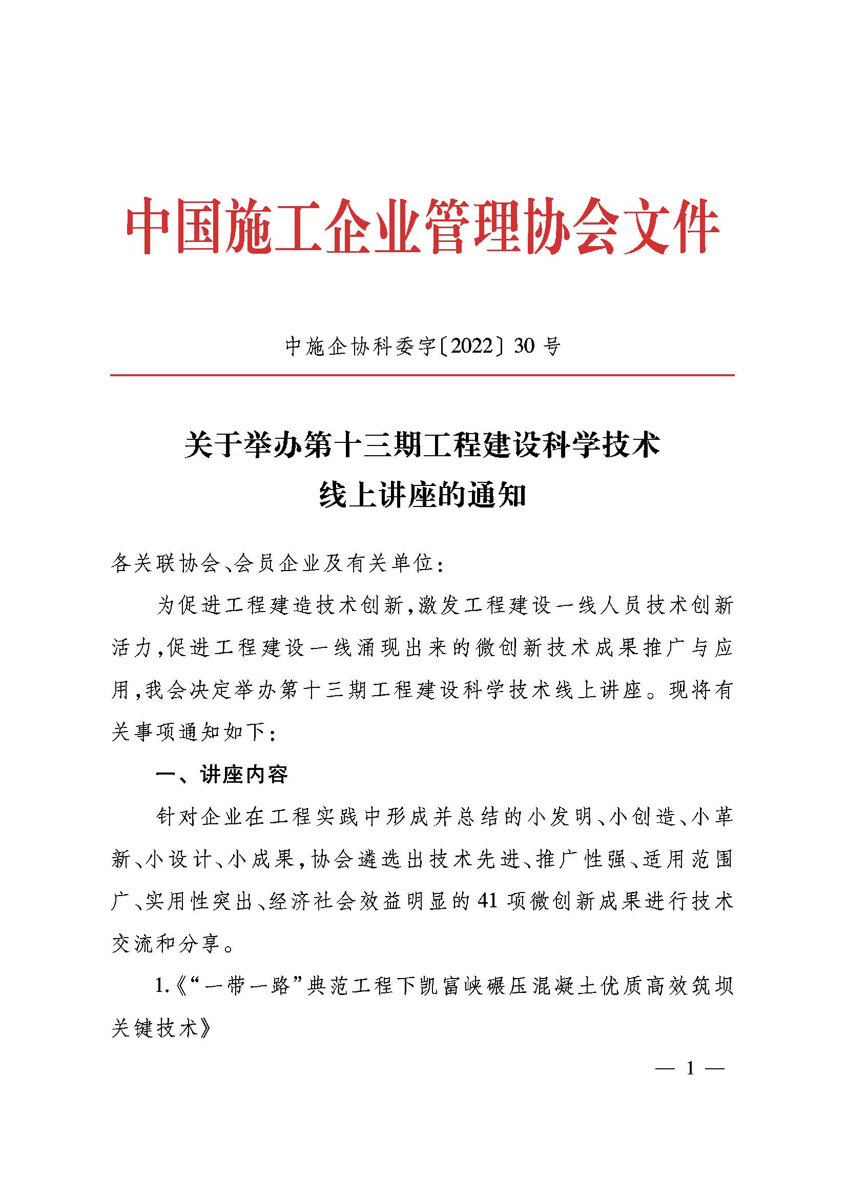 关于举办第十三期工程建设科学技术线上讲座的通知