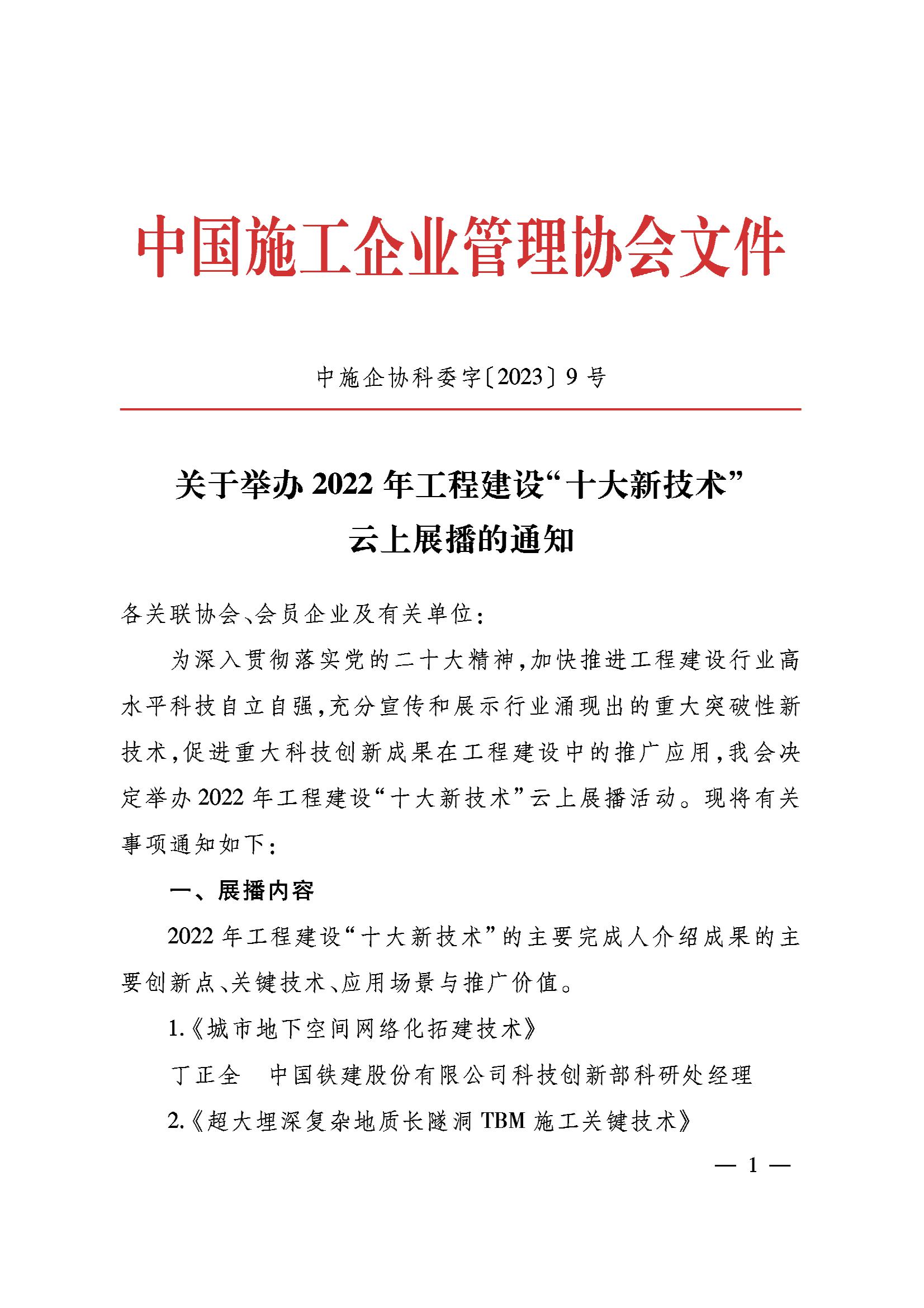 关于举办2022年工程建设“十大新技术”云上展播的通知