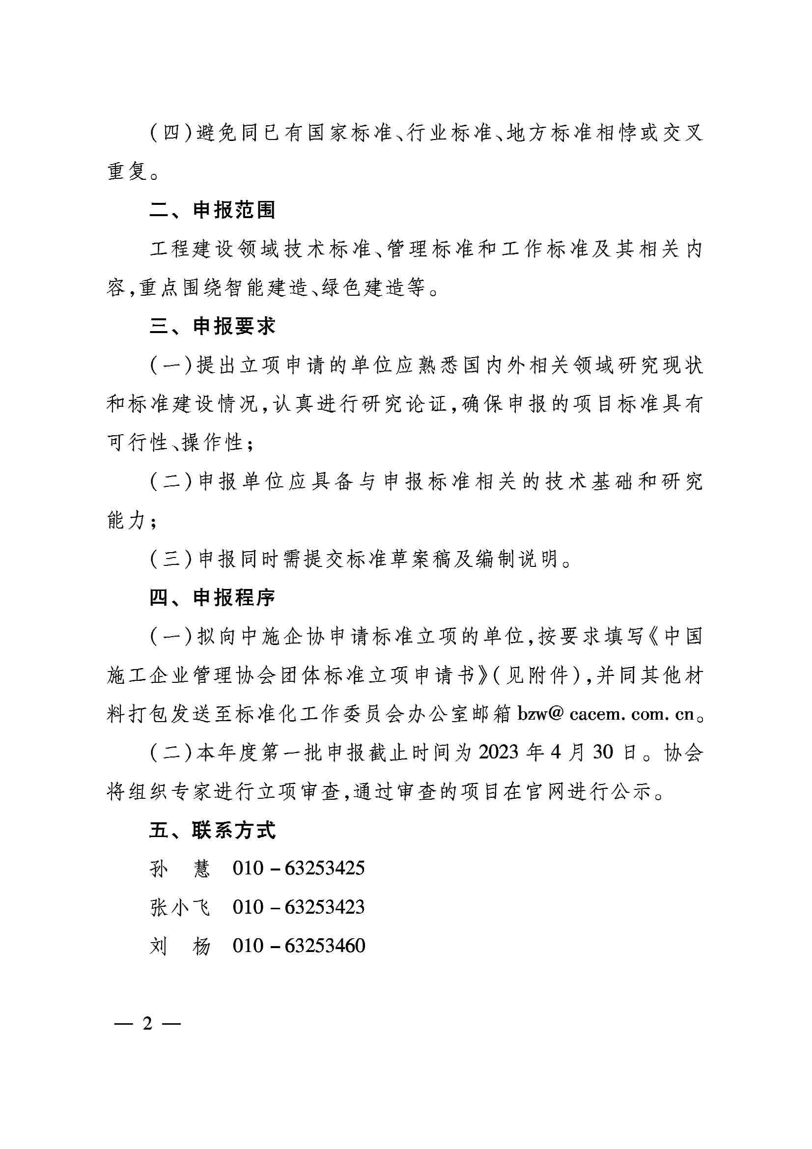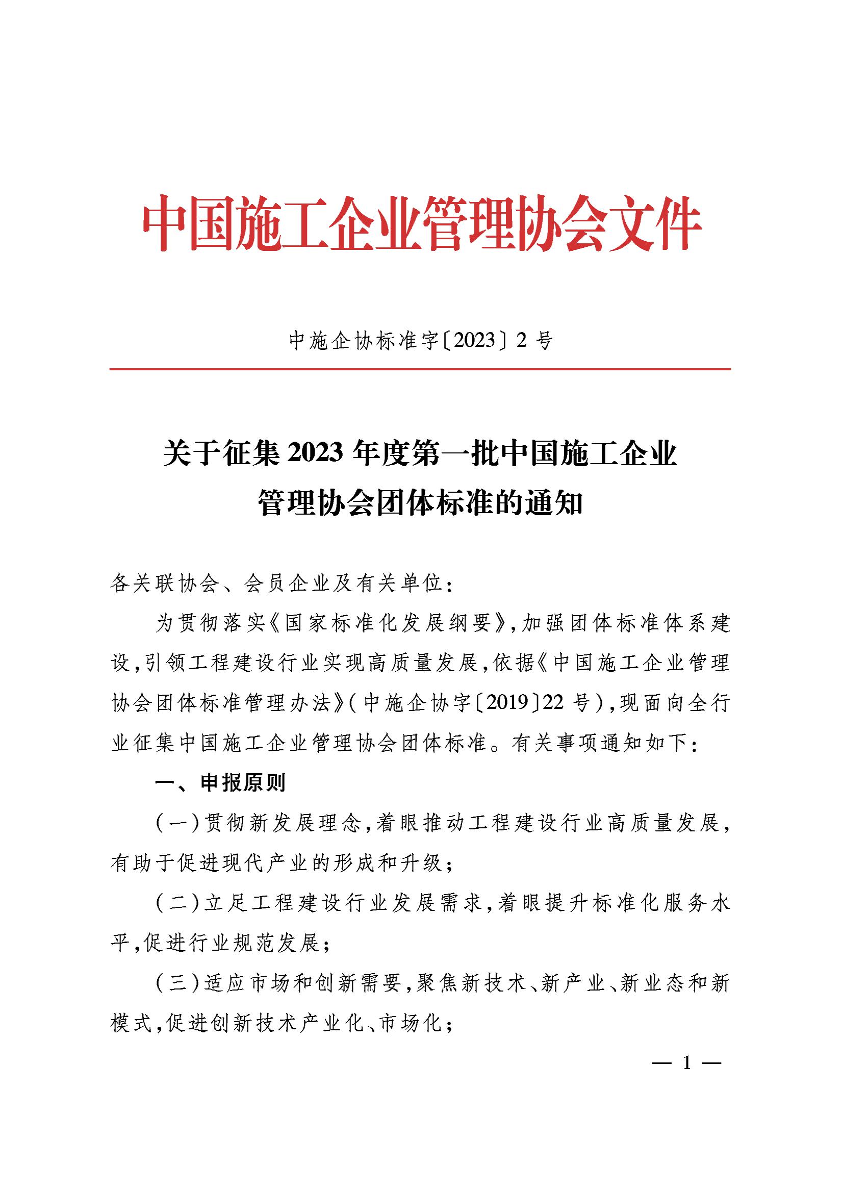 关于征集2023年度第一批中国施工企业管理协会团体标准的通知