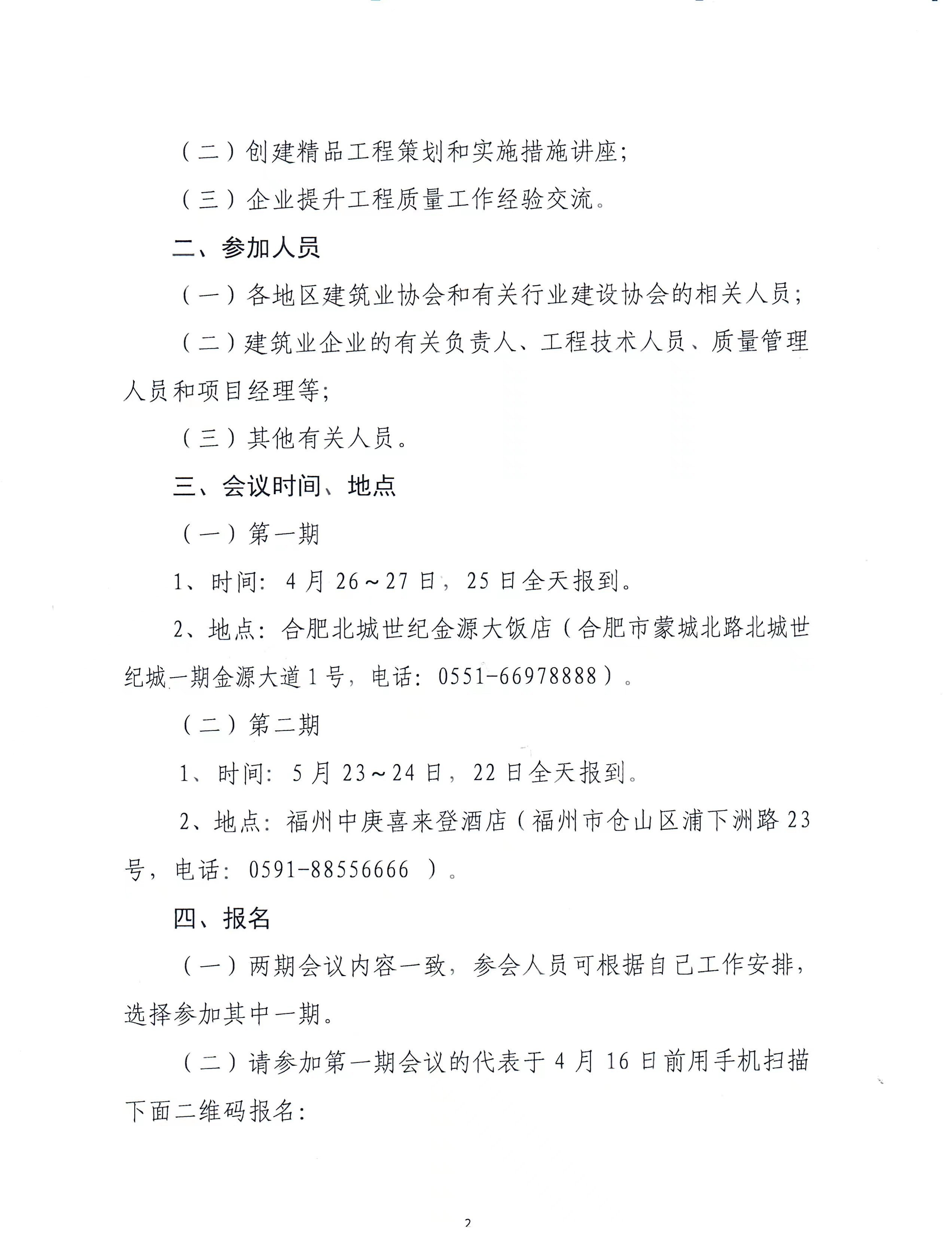 关于召开全国建筑业企业提升工程质量创建精品工程经验交流会的通知
