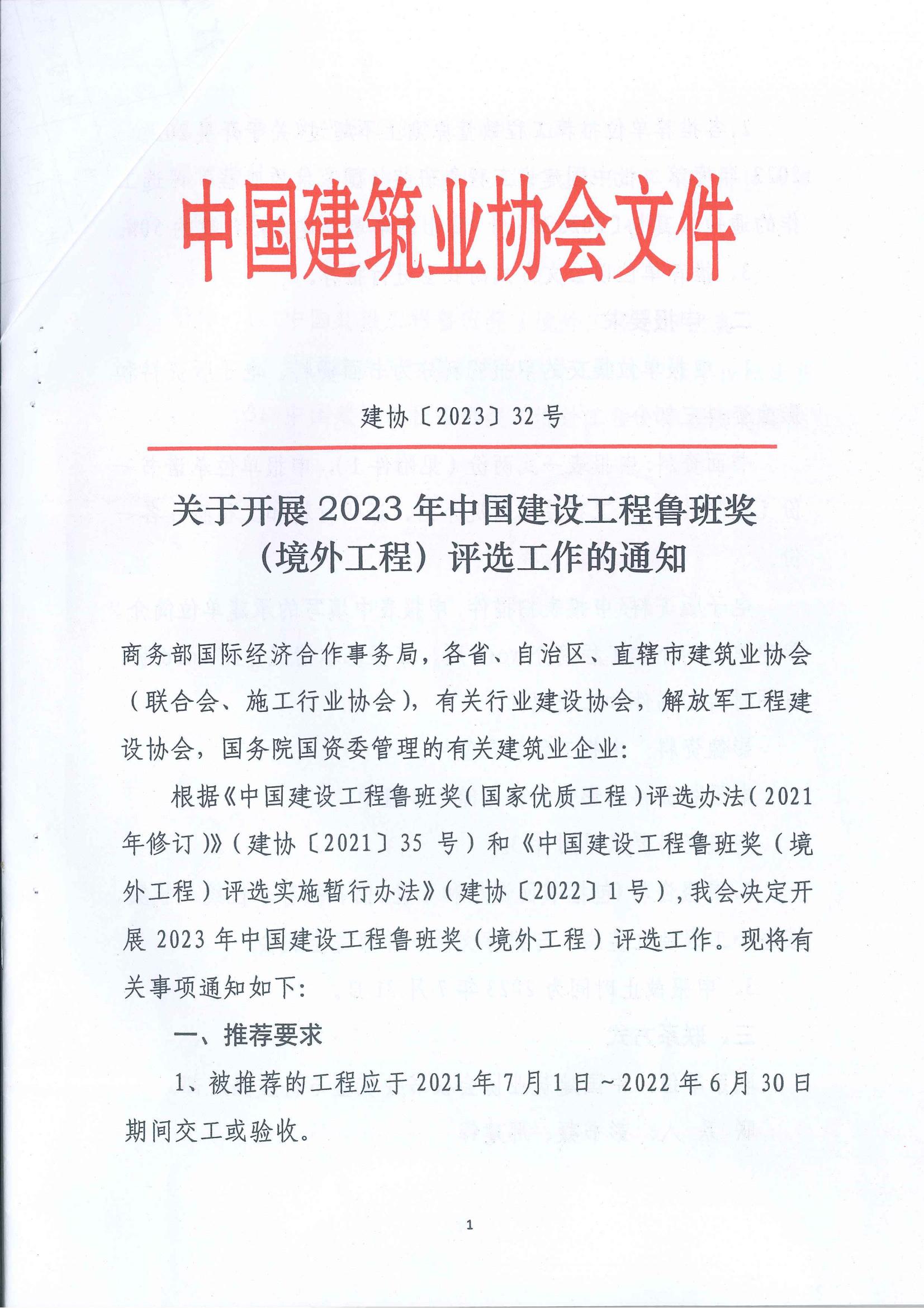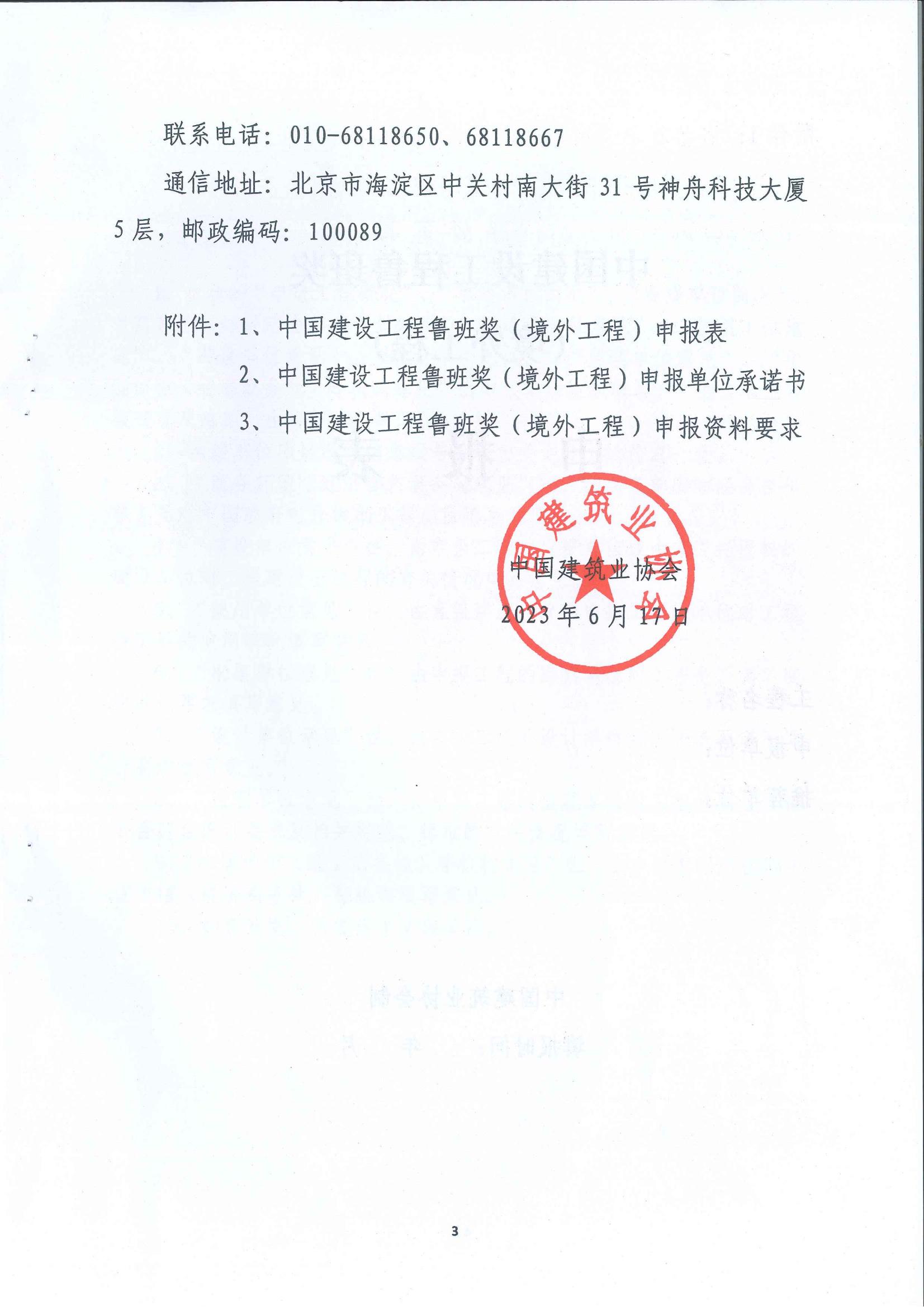 附件:1、中国建设工程鲁班奖(境外工程)申报表