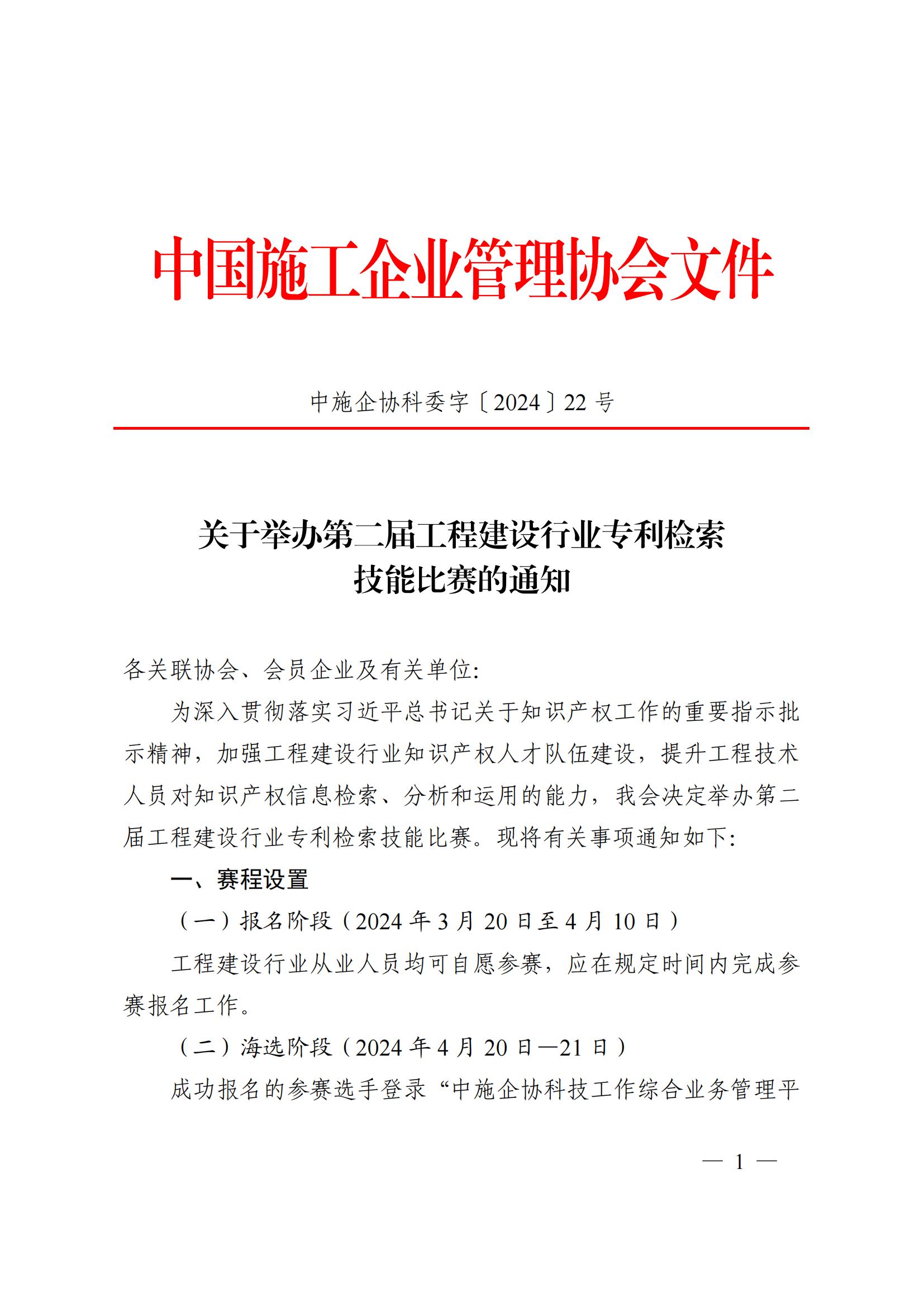 关于举办第二届工程建设行业专利检索技能比赛的通知
