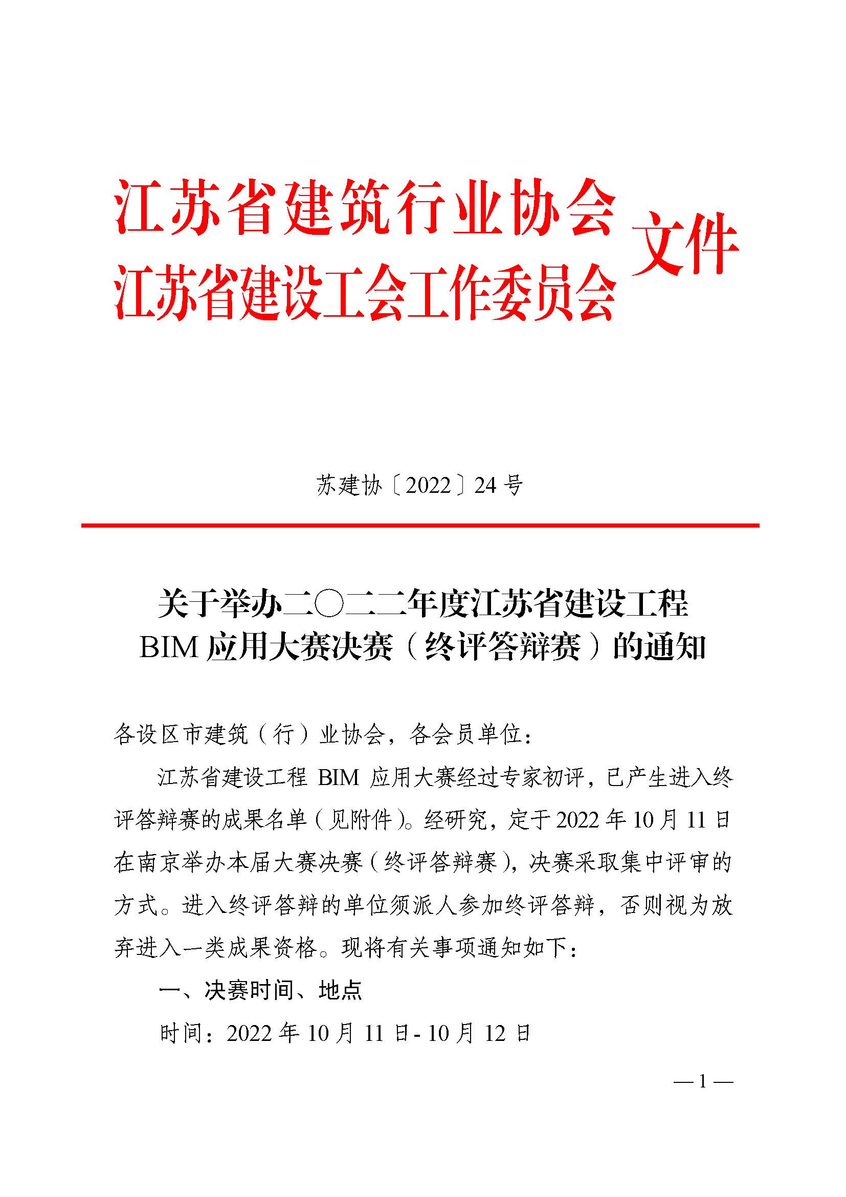 关于举办二〇二二年度江苏省建设工程BIM应用大赛决赛(终评答辩赛)的通知