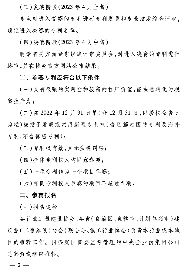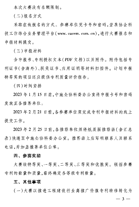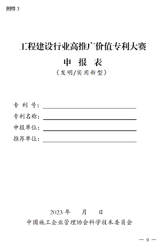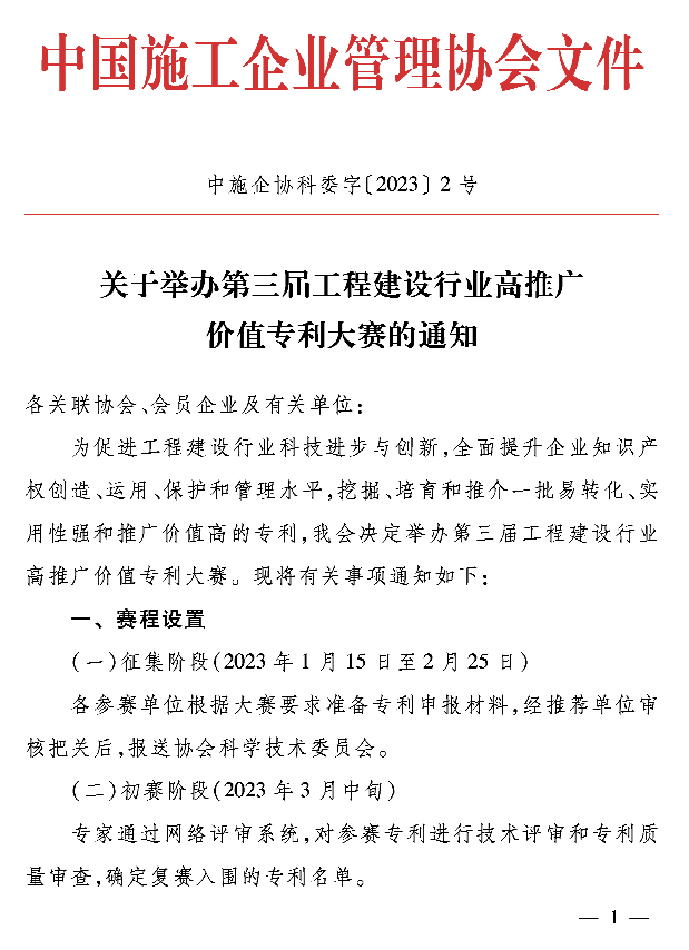 关于举办第三届工程建设行业高推广价值专利大赛的通知