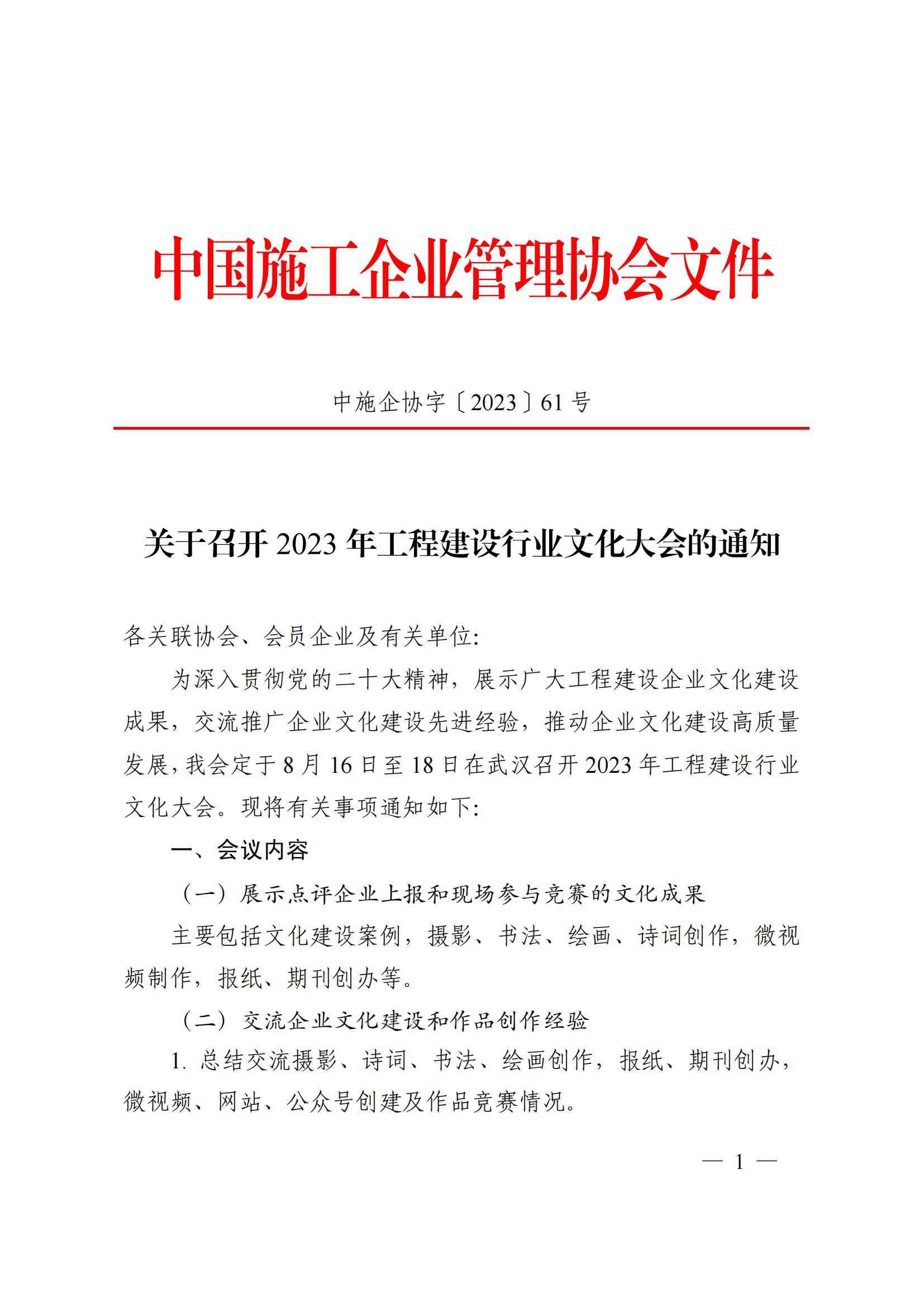 关于召开 2023 年工程建设行业文化大会的通知