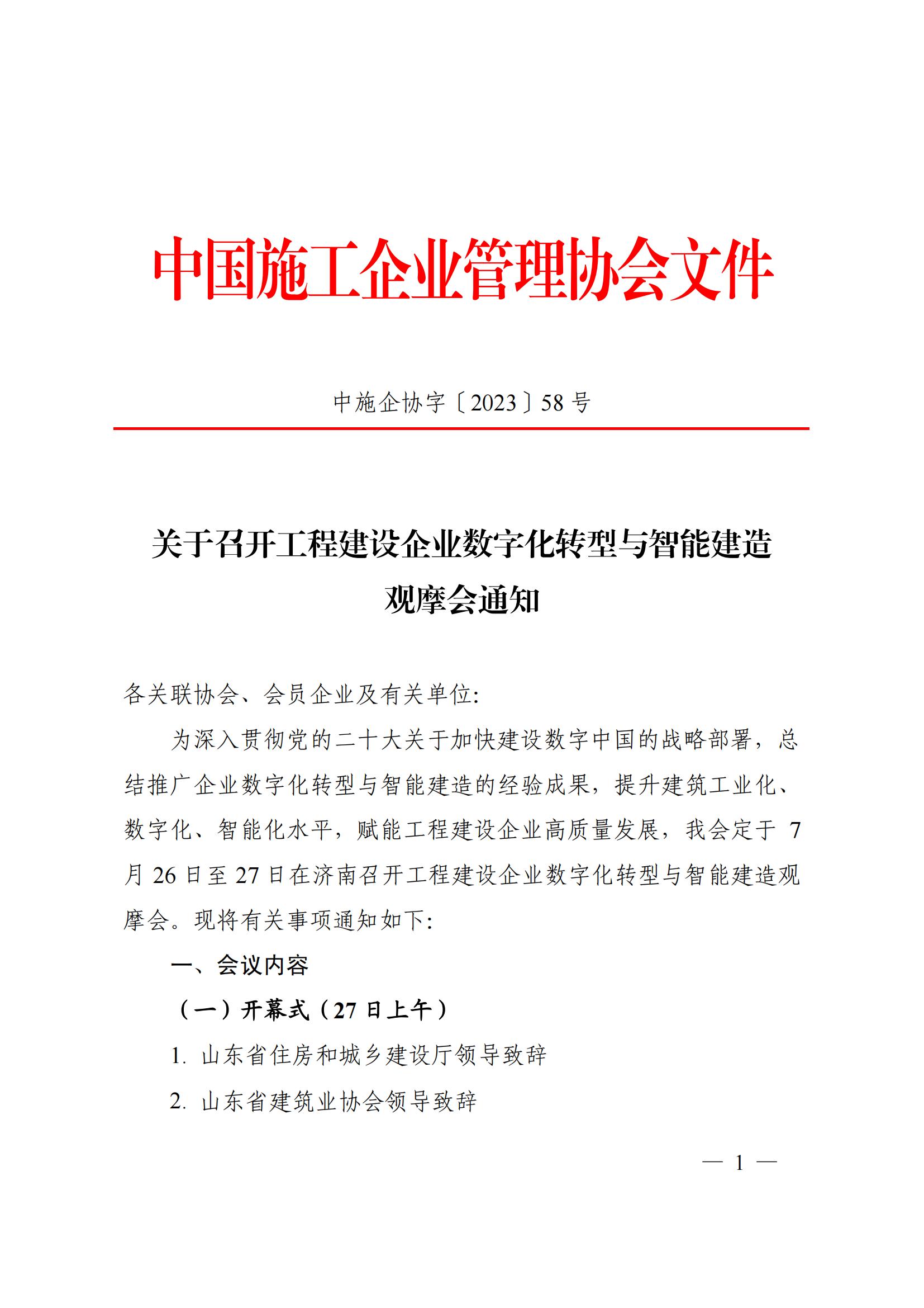 关于召开工程建设企业数字化转型与智能建造观摩会通知