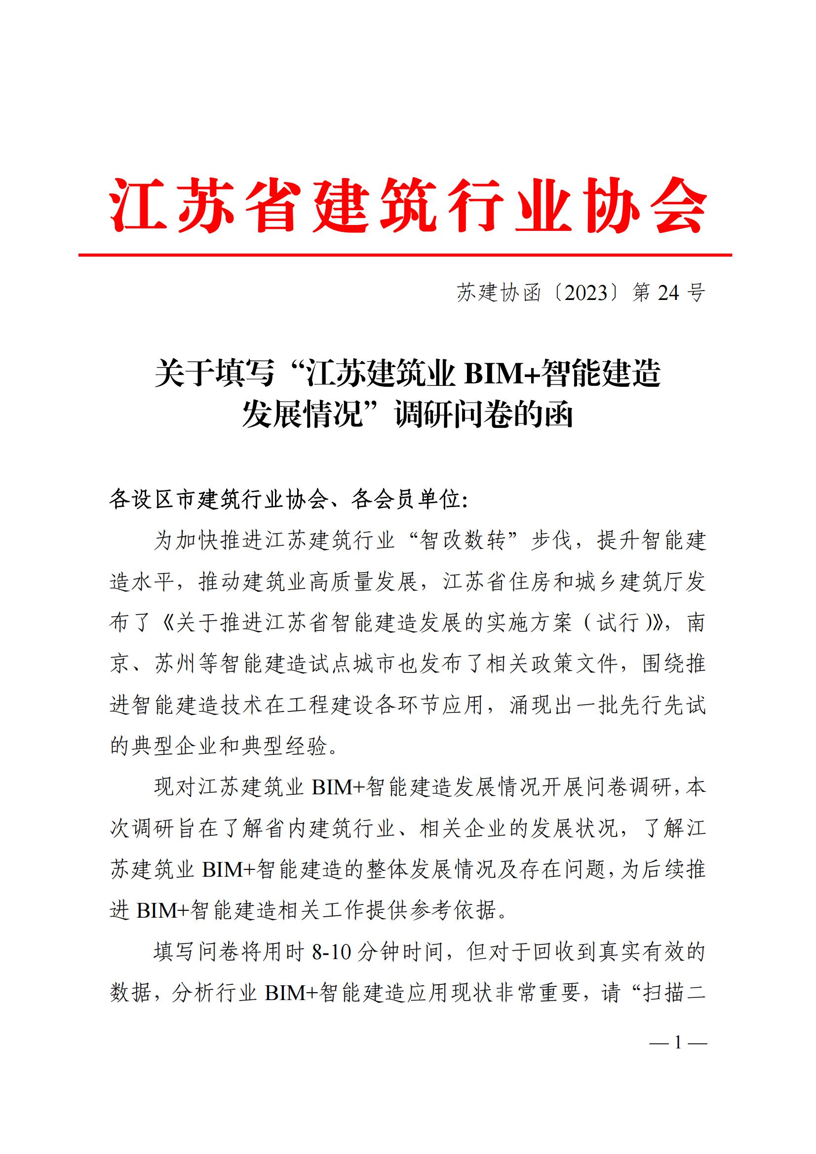 关于填写“江苏建筑业 BIM+智能建造发展情况”调研问卷的函
