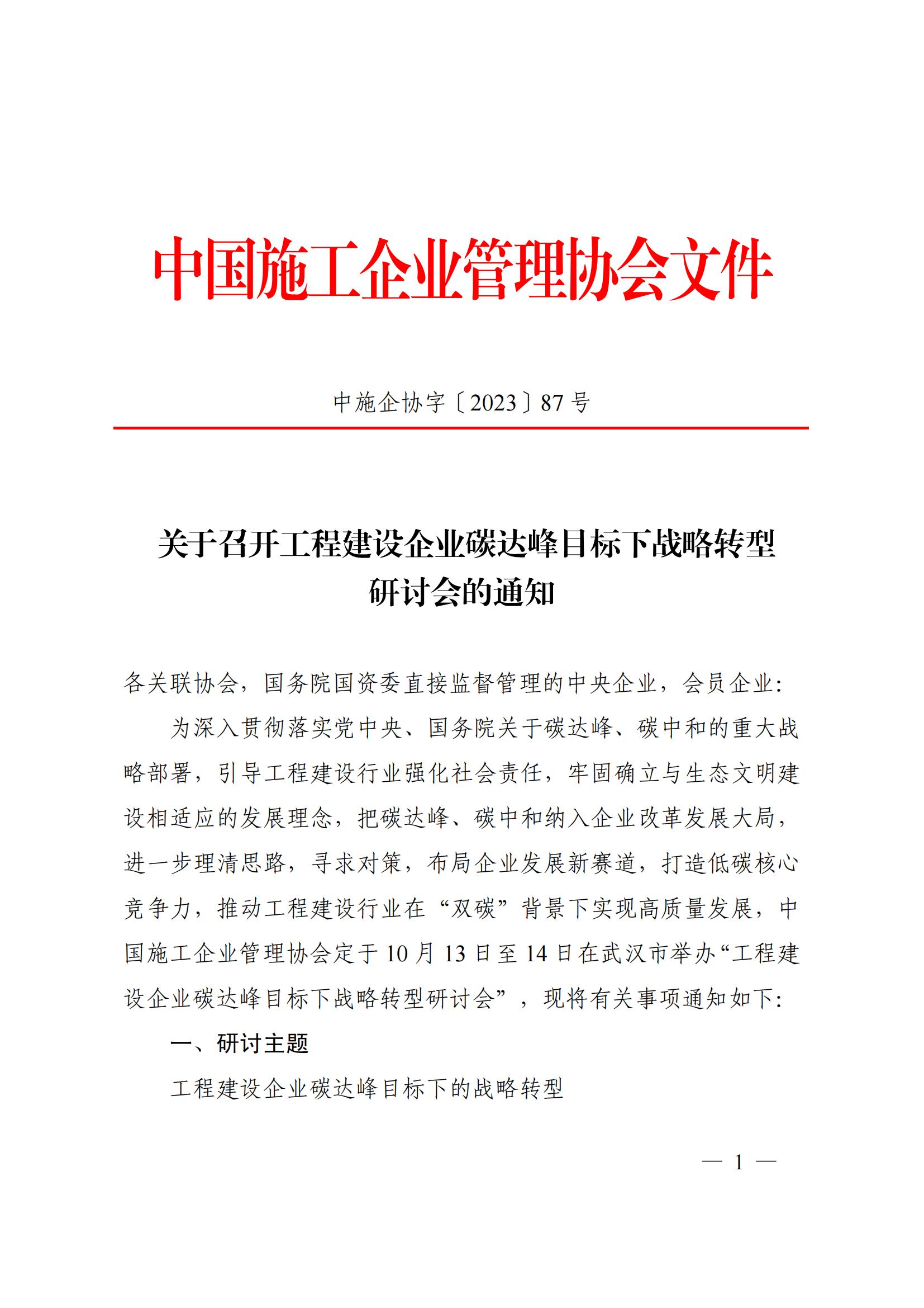 关于召开工程建设企业碳达峰目标下战略转型研讨会的通知
