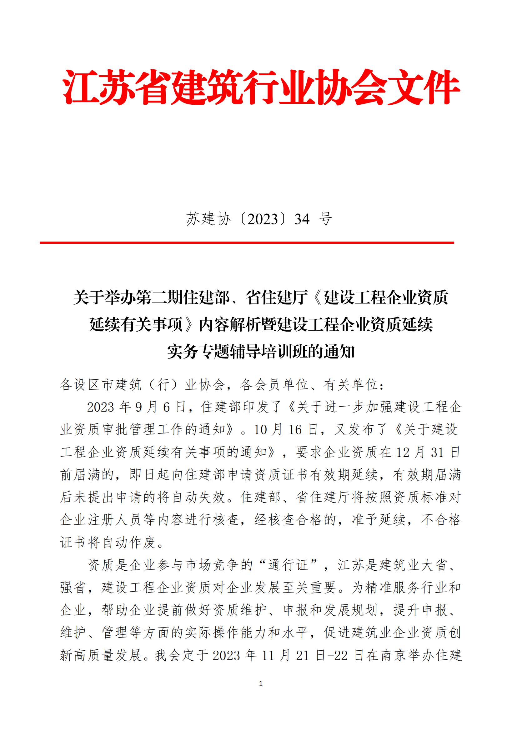 关于举办第二期住建部、省住建厅《建设工程企业资质延续有关事项》