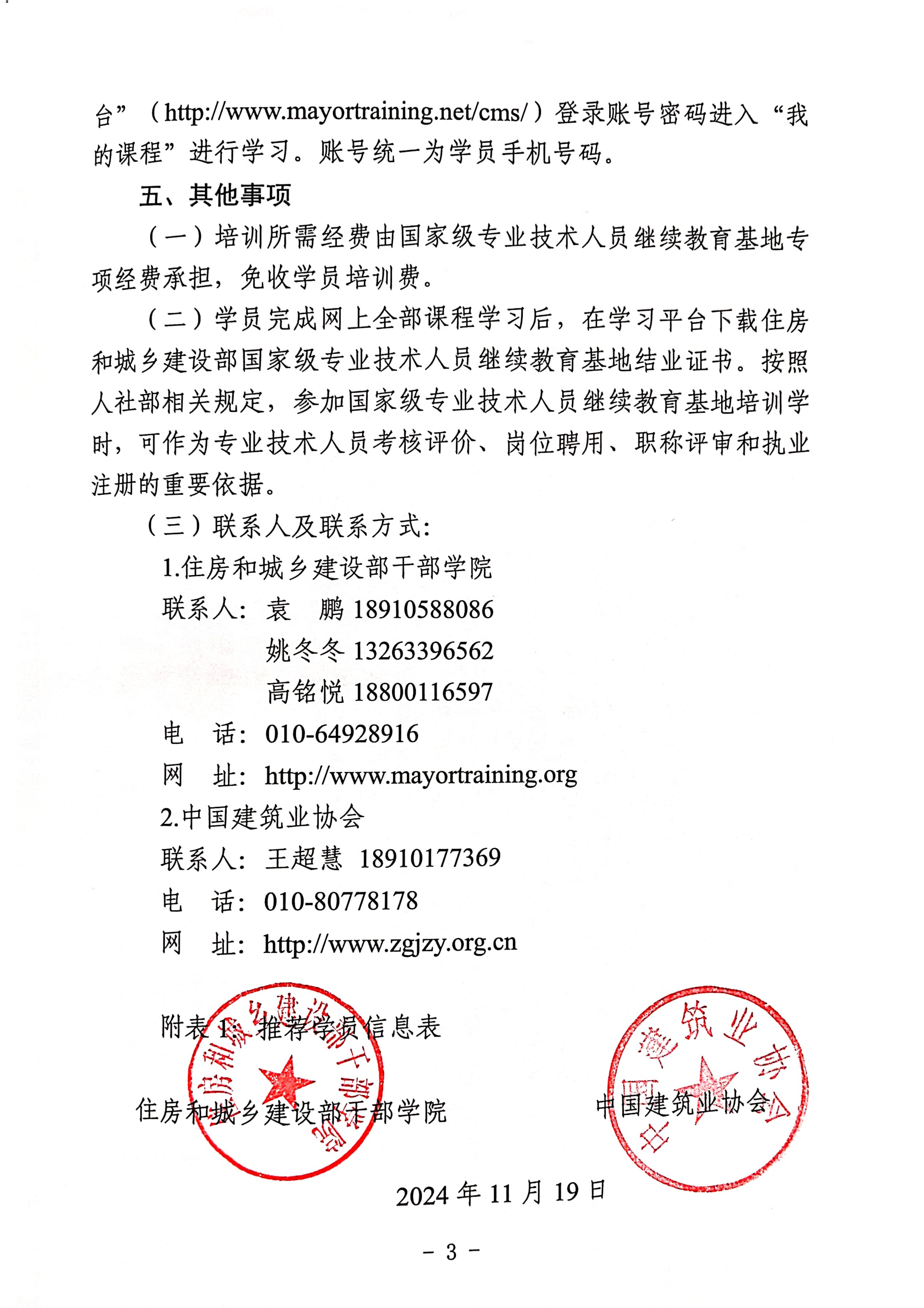 请参加培训人员按照通知要求进行报名,江苏省建筑行业协会联系人:张梓雲,联系电话:18851157988。