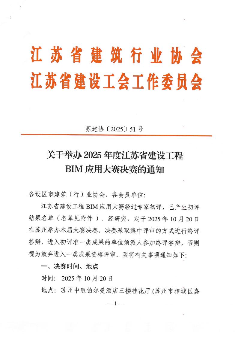 关于举办2025年度江苏省建设工程BIM应用大赛决赛的通知