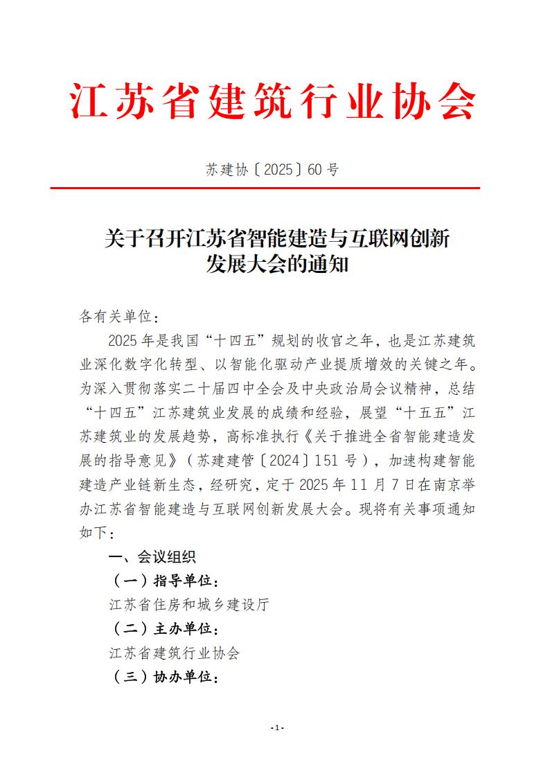 关于召开江苏省智能建造与互联网创新发展大会的通知