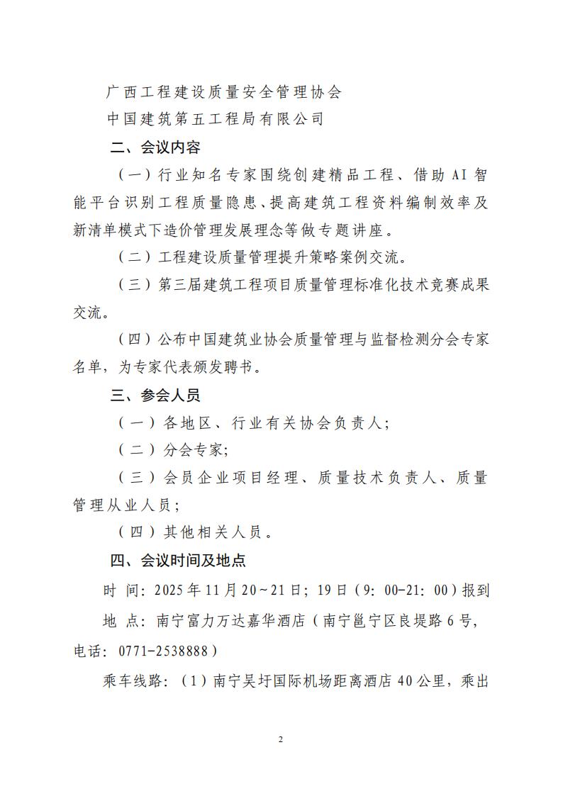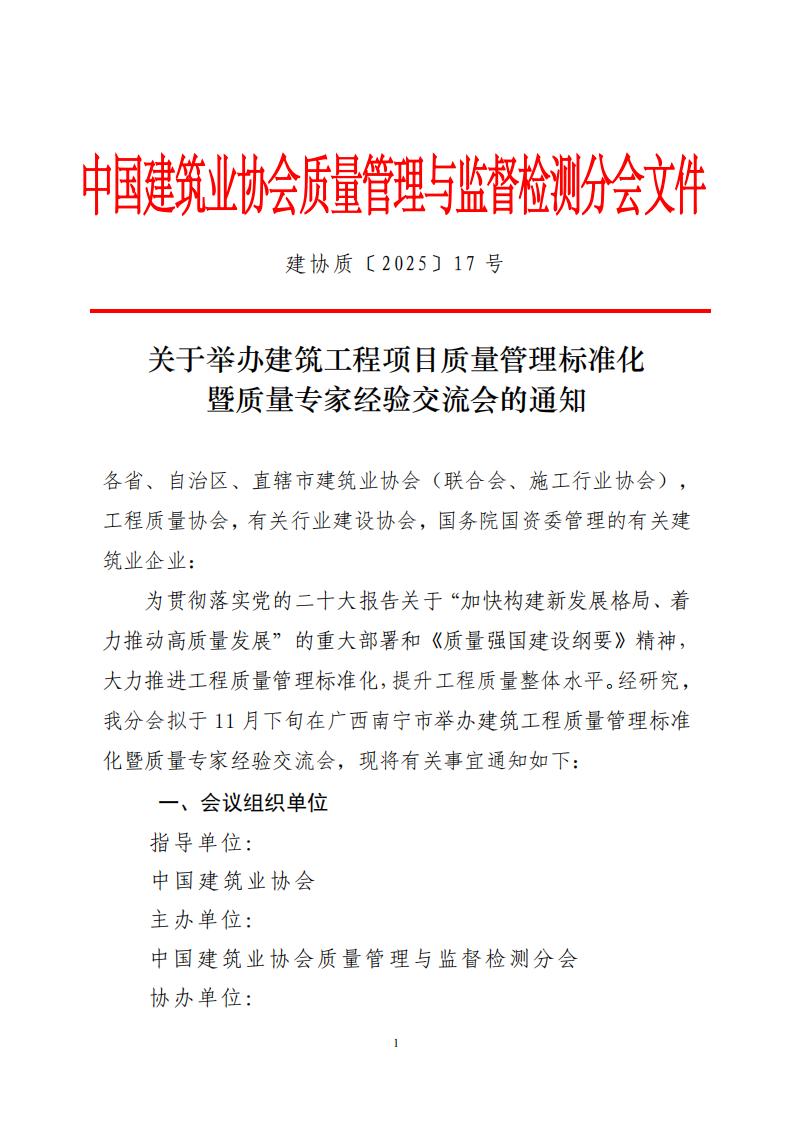 关于举办建筑工程项目质量管理标准化暨质量专家经验交流会的通知
