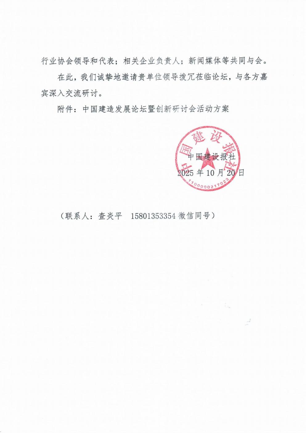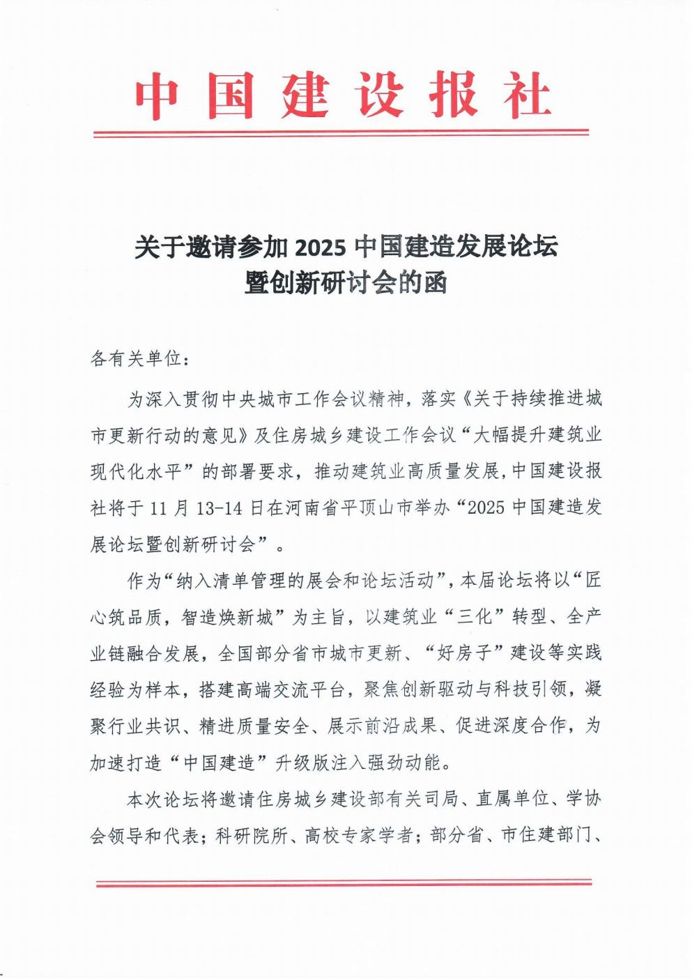 关于邀请参加2025中国建造发展论坛暨创新研讨会的函