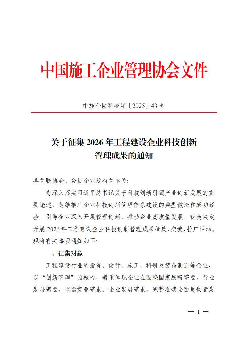 附件:1. 工程建设企业科技创新管理成果征集办法