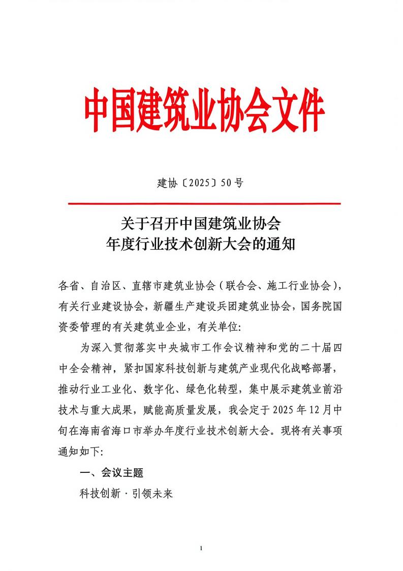 关于召开中国建筑业协会年度行业技术创新大会的通知
