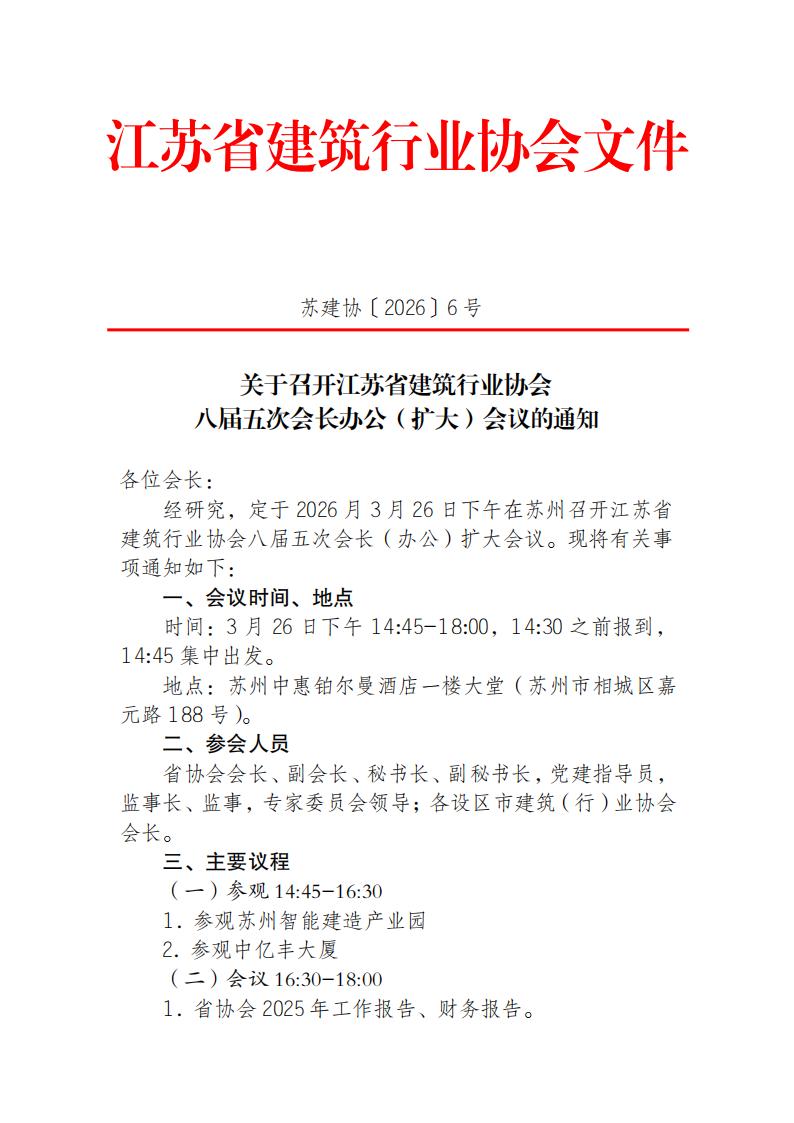 关于召开江苏省建筑行业协会八届五次会长办公(扩大)会议的通知
