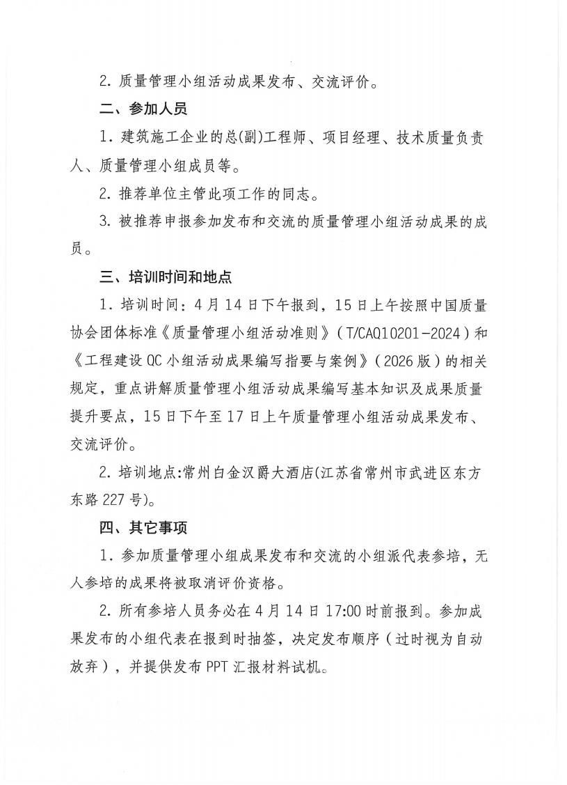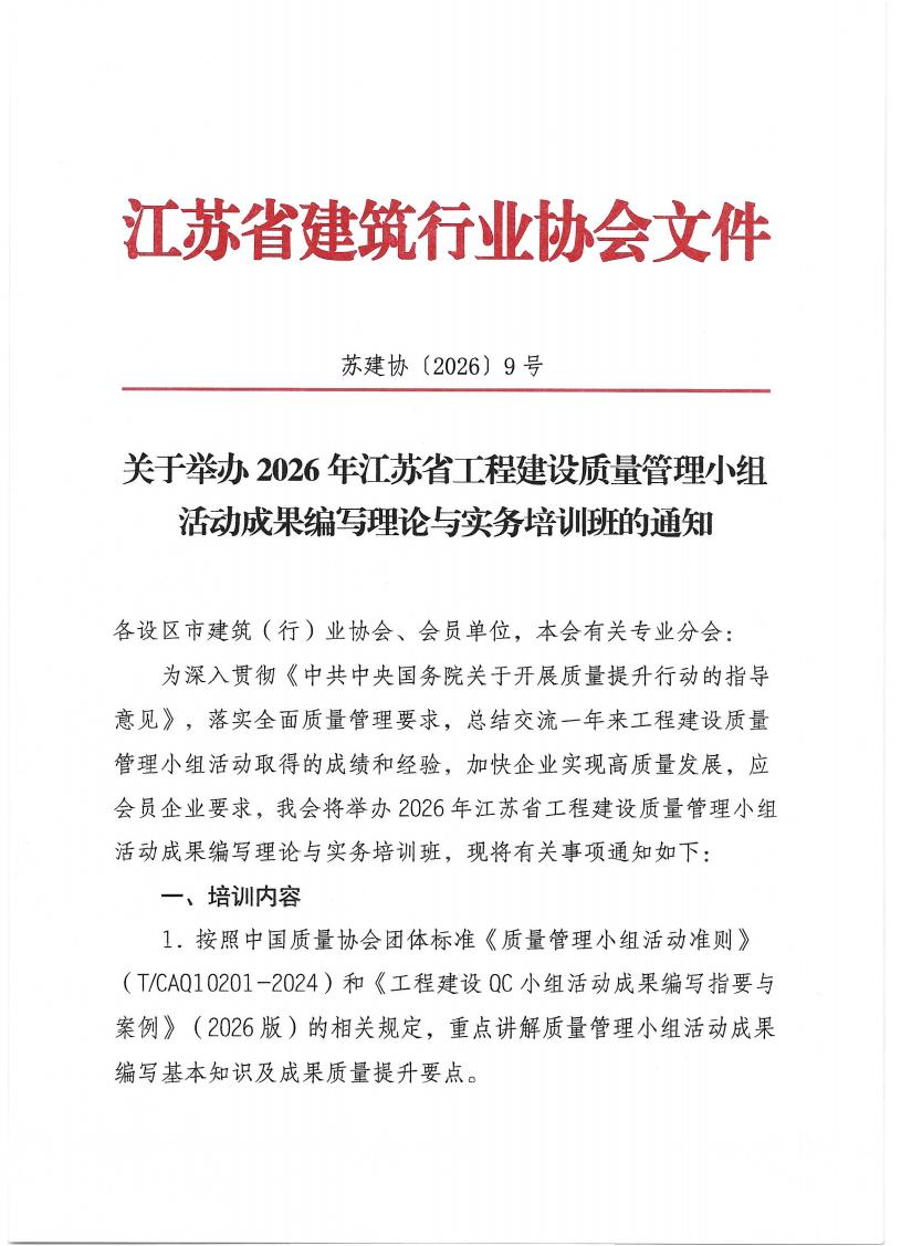 关于举办2026年江苏省工程建设质量管理小组活动成果编写理论与实务培训班的通知
